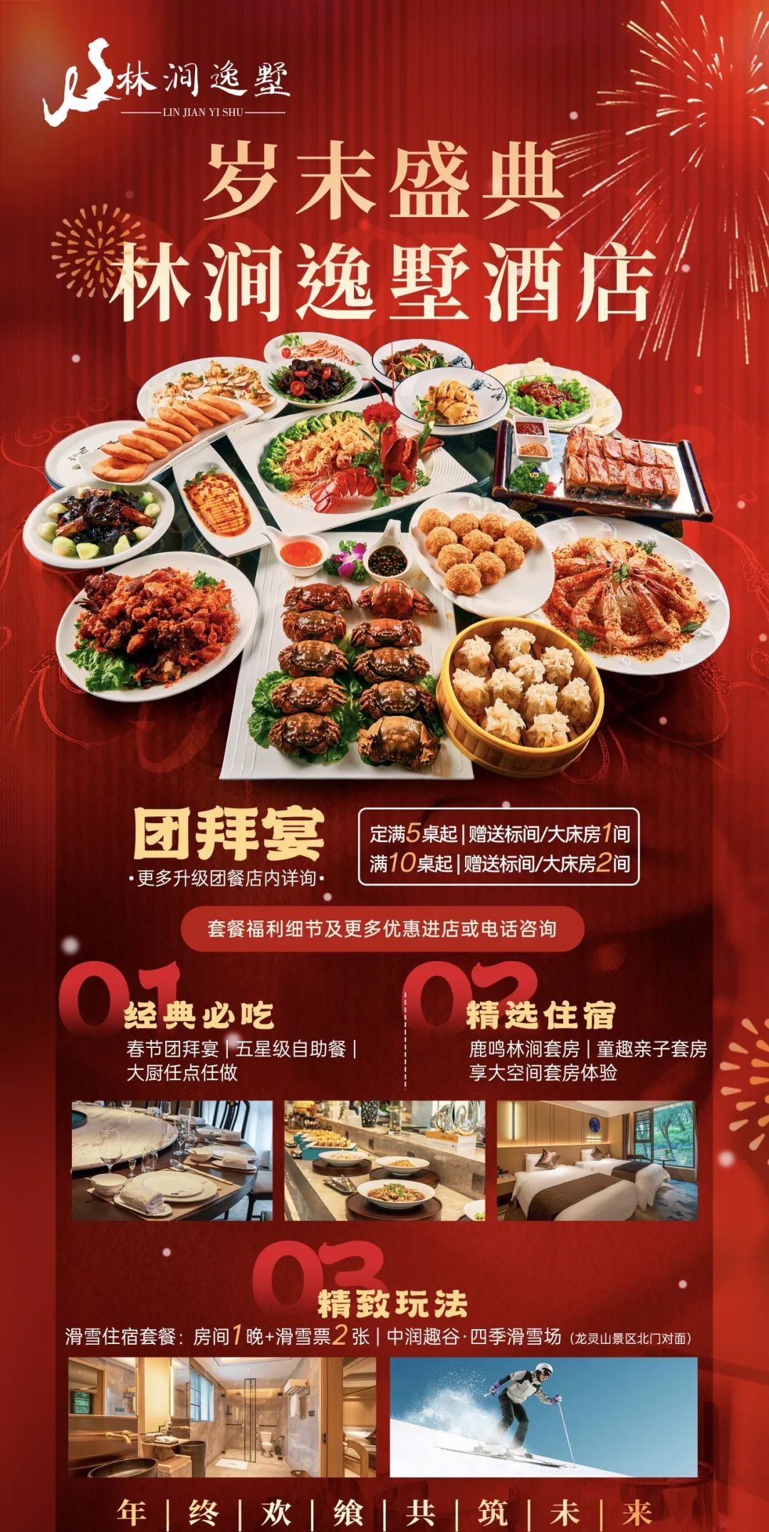春節(jié)期間正常開放,即日起至2月12日(正月十五)推出團年宴優(yōu)惠折扣套餐。