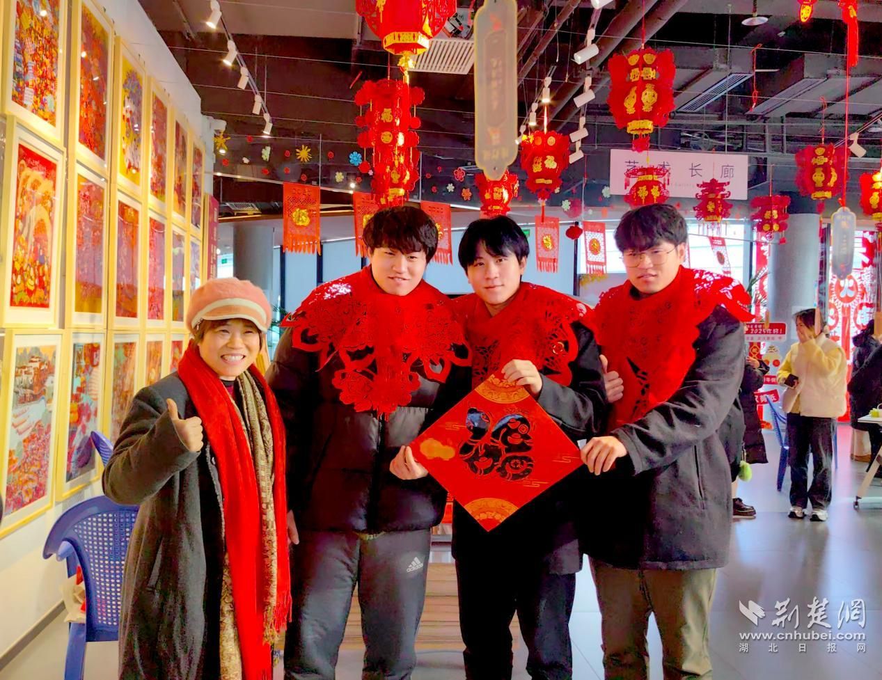 臺(tái)灣媽媽陳敏惠目前在武漢經(jīng)營翔和口腔診所。體驗(yàn)非遺版畫和剪紙后,她對(duì)精巧的非遺贊嘆不已,直言此次武漢過年十分精彩、“年味足”。結(jié)束后,她將剪紙作品佩戴在三個(gè)兒子身上合影留念,稱紅色剪紙?jiān)⒁饧?,承載著對(duì)孩子們的新年祝福,“我覺得剪紙滿是福氣的意味,這樣新年才有新希望?!?/p>
