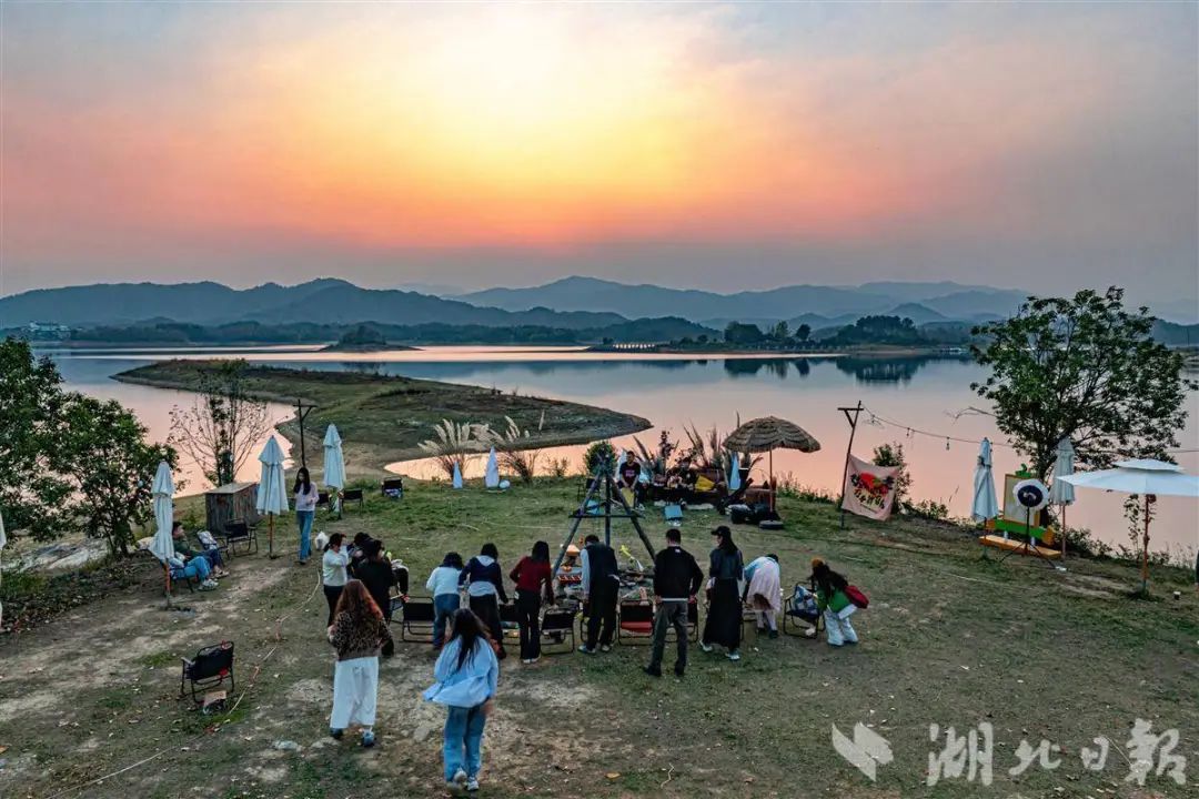 沿黃陂木蘭大道一路北行,“小千島湖”梅店水庫旁,藏著武漢的新晉網(wǎng)紅打卡地——山島里營地。