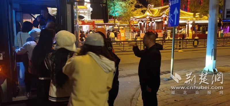 19時(shí)20 分,首輛增援公交車(chē)抵達(dá)櫻園門(mén)口。城管執(zhí)法隊(duì)員現(xiàn)場(chǎng)指揮,維持秩序,并做好解釋安撫工作,引導(dǎo)游客有序乘車(chē)。隨后,補(bǔ)充車(chē)輛接力跟進(jìn)。20時(shí)點(diǎn)30 分,最后一批游客乘上公交車(chē),順利返程。