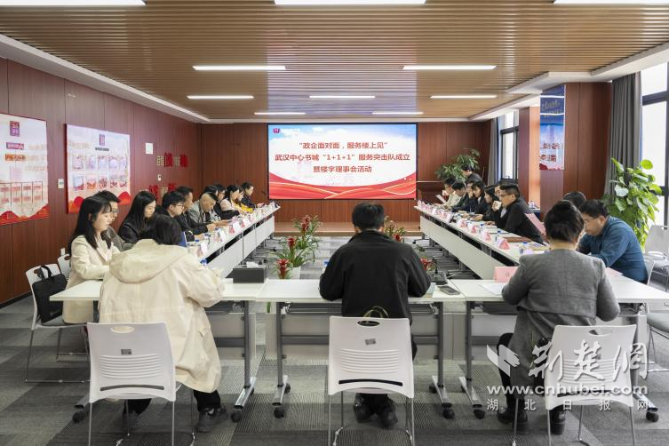 3年前,武漢中心書(shū)城在菱角湖畔拔地而起,街道第一時(shí)間選派了2名業(yè)務(wù)骨干駐點(diǎn)書(shū)城招商引商,派駐4名經(jīng)驗(yàn)豐富的專(zhuān)職黨建指導(dǎo)員做好聯(lián)絡(luò)服務(wù)、黨建指導(dǎo)、需求收集等工作。隨著樓宇企業(yè)不斷發(fā)展,需求愈發(fā)多元化,街道打破地域、部門(mén)界限,強(qiáng)化樓宇服務(wù)力量,組建了這支由區(qū)經(jīng)科局干部、街道干部、社區(qū)黨員組成的“1+1+1”突擊隊(duì)。