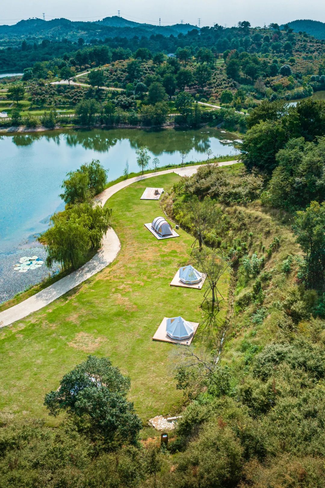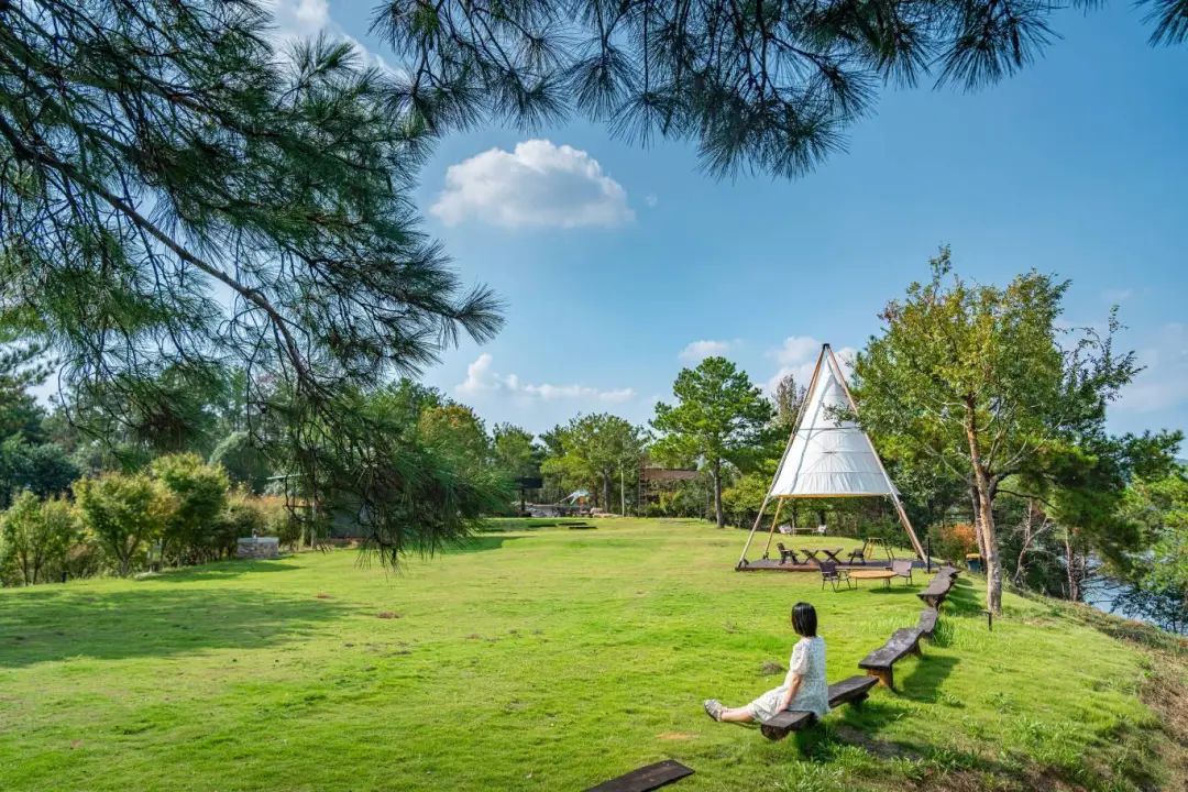 星星湖營地占地2000畝,清澈的池塘和開闊的自然景觀組成了這一處宛若仙境的景色。