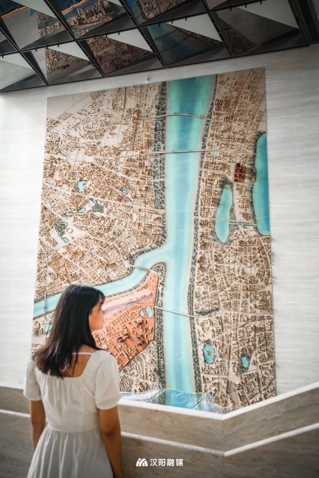 進(jìn)入「武漢之眼」,迎面就是12米高的武漢3D鳥(niǎo)瞰模型撲入眼中,兩江三鎮(zhèn)的輪廓展開(kāi),不由感嘆武漢好大好美,好想帶上心愛(ài)的TA,在漢陽(yáng)選一個(gè)地方安居未來(lái)的家。