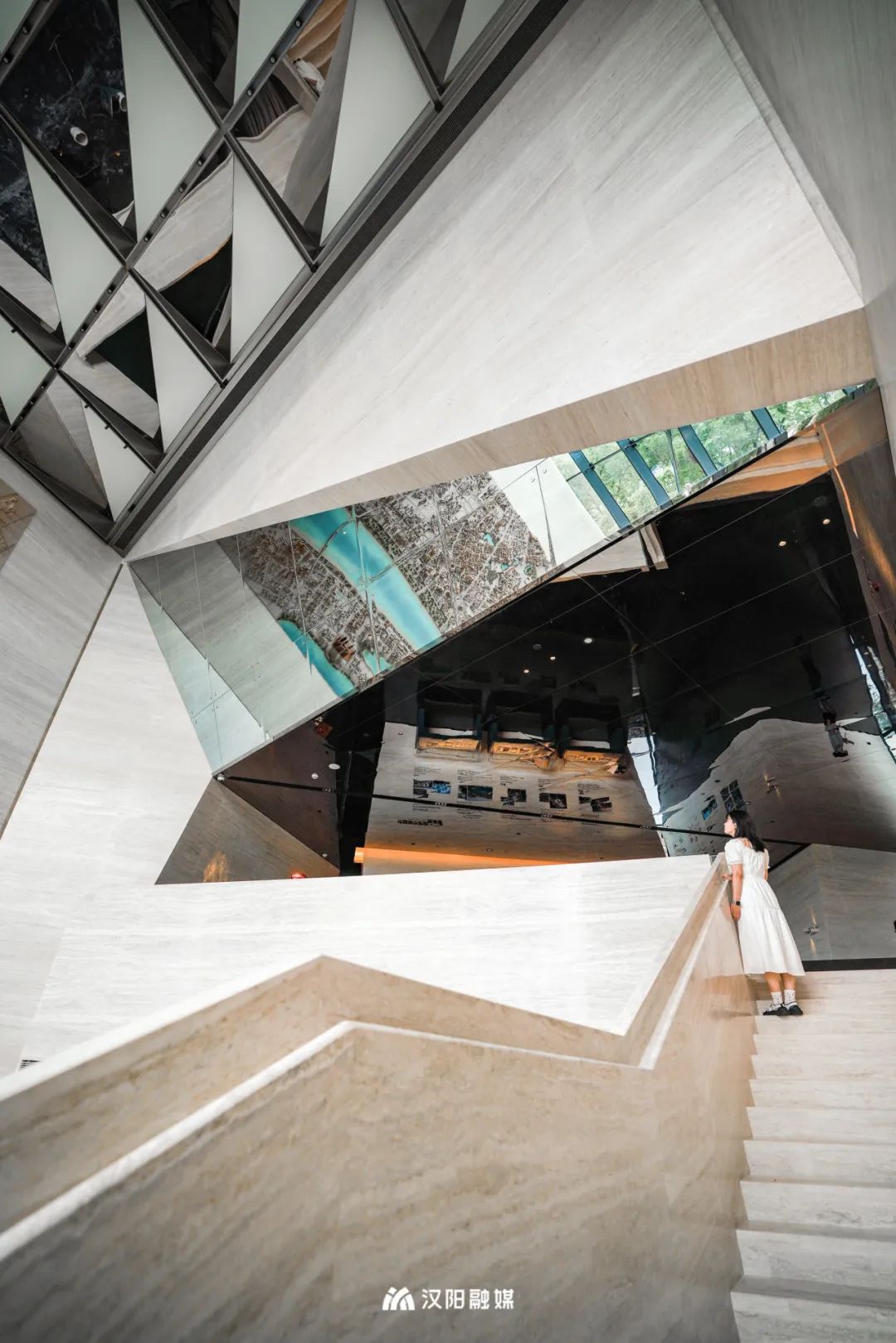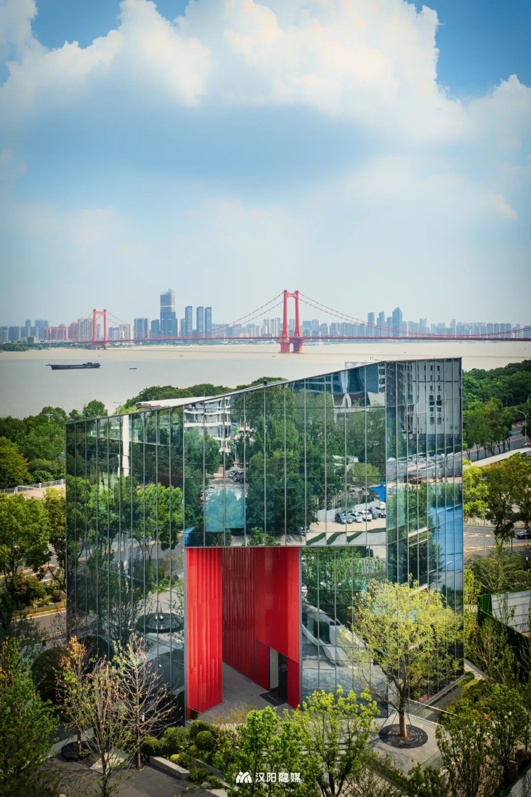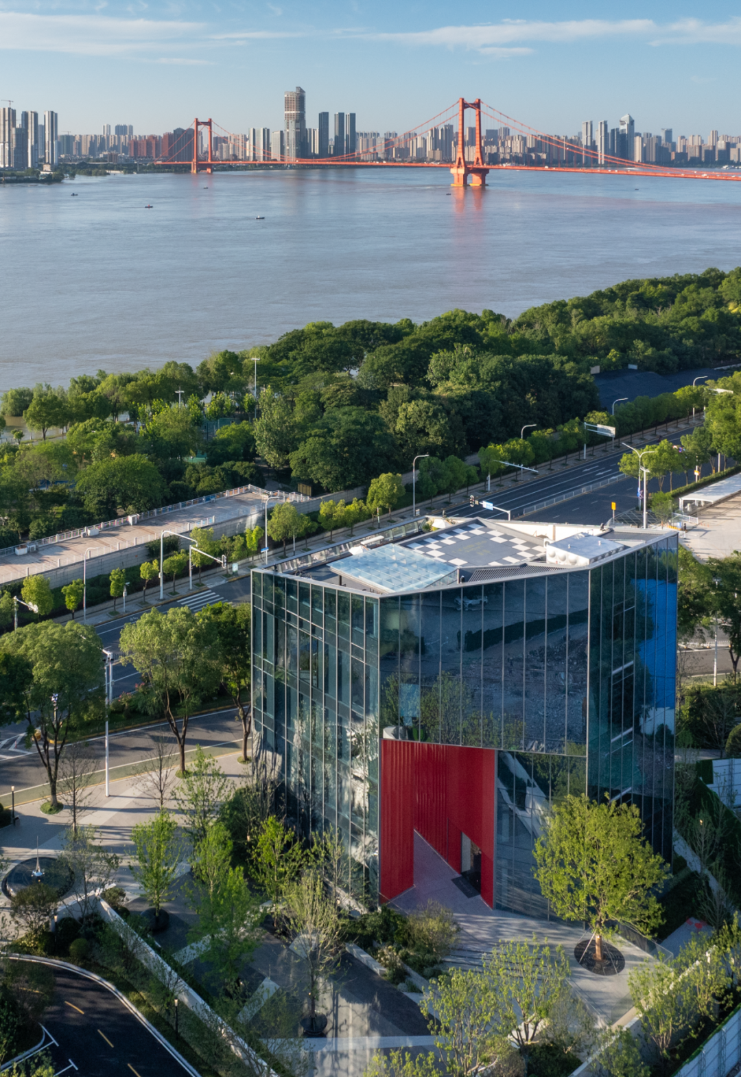 巨大紅框建筑面朝長(zhǎng)江,矗立在漢陽(yáng)古城文化軸的端點(diǎn),眼前是“唯見(jiàn)長(zhǎng)江天際流”的盛景,背后是超1400年歷史的顯正街延伸而去。