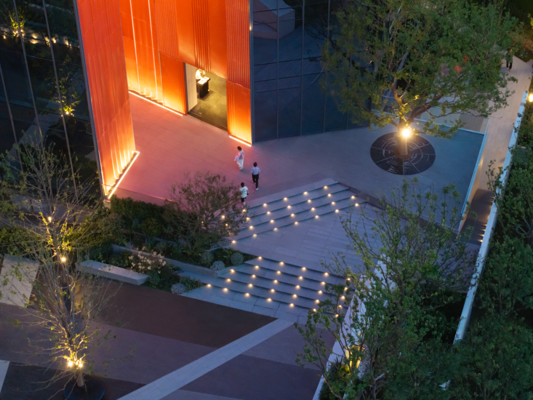 △「武漢之眼」中間鏤空形成一個(gè)紅色取景框。站在「武漢之眼」正前方,你會(huì)被其宛如水晶切割的建筑體深深震撼,中間斜向構(gòu)造,形成一個(gè)巨大的紅色取景框,在光的引導(dǎo)下,視線聚焦,隨手拍都是大片。