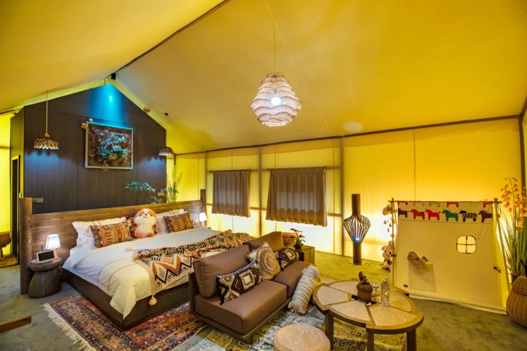 ? 三家民宿組CP選你所愛:除了專注親子出游需求的樂貝·甘露山,隔壁新中式「千里走單騎」和叢林秘境「個個世界」也各具特色,一鍵切換度假畫風!