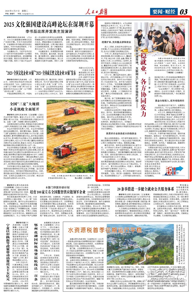 《人民日報(bào)海外版》在文章中提到,穩(wěn)企業(yè)就是穩(wěn)就業(yè),不少企業(yè)積極發(fā)揮平臺優(yōu)勢,以真金白銀的投入助力穩(wěn)就業(yè)。美團(tuán)2025年春季預(yù)計(jì)校園招聘5000人,覆蓋10大類、100余種崗位,助力學(xué)子更好就業(yè);為了幫助優(yōu)質(zhì)外貿(mào)企業(yè)快速開拓國內(nèi)市場,美團(tuán)通過多種方式支持外貿(mào)商品上線美團(tuán)各業(yè)務(wù),幫助外貿(mào)企業(yè)更好穩(wěn)就業(yè)。