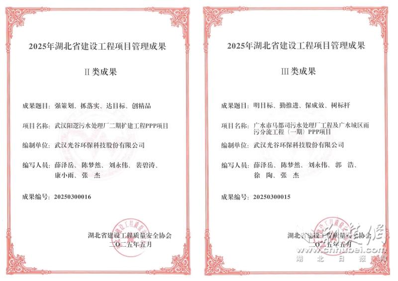 荊楚網(wǎng)(湖北日報網(wǎng))訊(通訊員 董高宣)近日,湖北省建設(shè)工程質(zhì)量安全協(xié)會召開2025年度湖北省建設(shè)工程項目管理成果交流發(fā)布會。湖北聯(lián)投東湖高新集團(tuán)旗下光谷環(huán)保申報的兩項成果,分別斬獲項目管理成果Ⅱ類獎、Ⅲ類獎。
