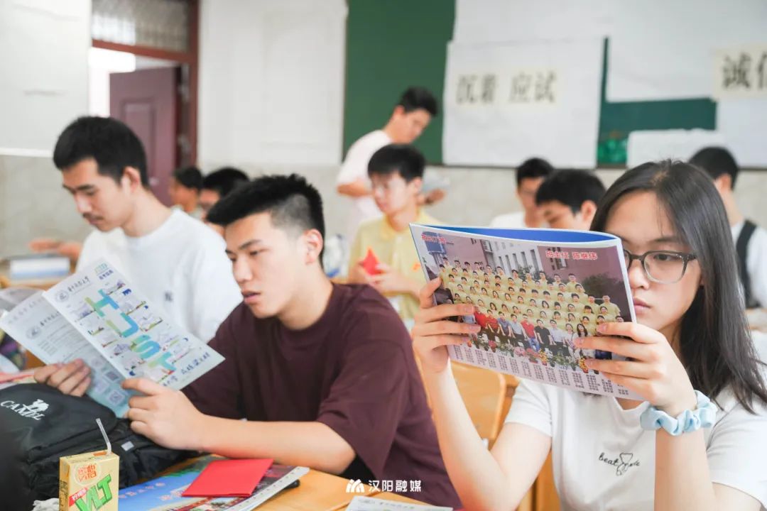 △高考查分第二天,高三(12)班的同學(xué)們返校,此時的他們心情輕松。