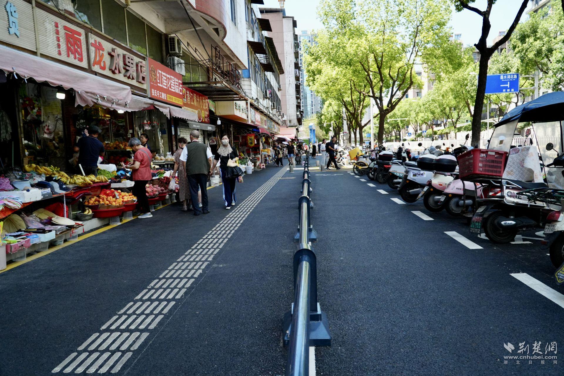 現(xiàn)在,瀝青路面平整干凈,人行道、非機(jī)動(dòng)車道清晰分隔;370米護(hù)欄有效實(shí)現(xiàn)人車分流;桂花樹與香樟樹點(diǎn)綴街頭,市場顏值大大提升。而市場外圍的“外擺線”,也讓攤販有序經(jīng)營、秩序井然。