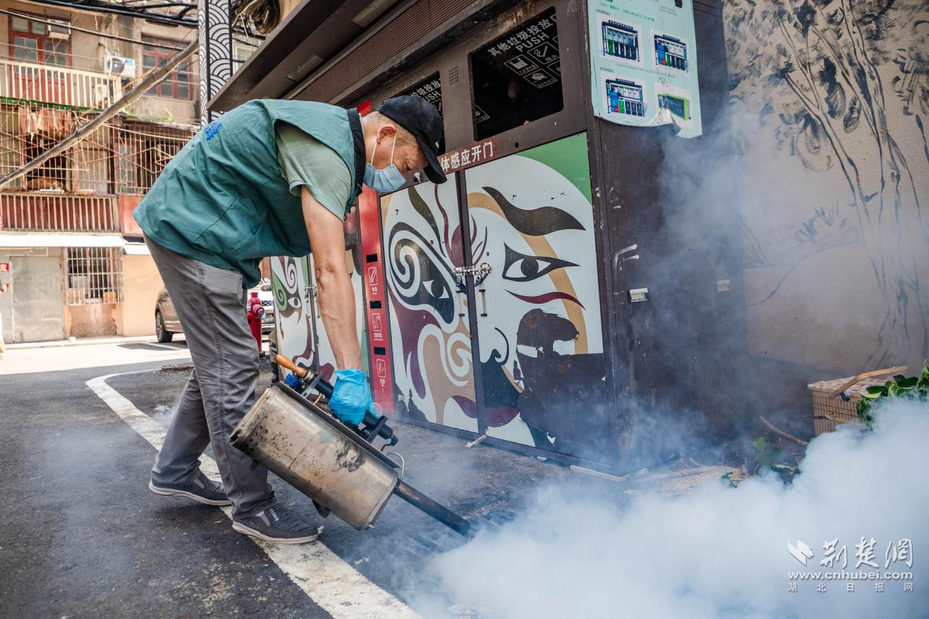 其中江漢區(qū)城管部門(mén)聯(lián)合衛(wèi)健部門(mén),組織專(zhuān)業(yè)消殺隊(duì)伍,利用熱煙霧機(jī)對(duì)轄區(qū)公共區(qū)域開(kāi)展系統(tǒng)性消殺,同時(shí)對(duì)窨井投放滅蚊幼蟲(chóng)緩釋劑,確保消殺工作高效徹底?!安粌H要消殺成蟲(chóng),更要斷了蚊蟲(chóng)的‘后路’”現(xiàn)場(chǎng)一位工作人員解釋道。洪山區(qū)城管部門(mén)則采用“清理+消殺”方式,由工作人員身著防護(hù)服,先使用高壓水槍對(duì)垃圾清運(yùn)車(chē)輛、地埋站設(shè)備進(jìn)行深度沖洗,再對(duì)垃圾容器、排水溝、果皮箱等易滋生蚊蟲(chóng)的部位進(jìn)行細(xì)致噴灑,全方位筑牢夏季防蚊“防護(hù)盾”。