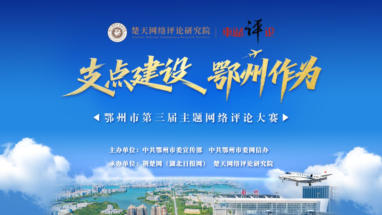 以賽為媒、以筆為犁、以評(píng)聚力。鄂州市第三屆網(wǎng)絡(luò)評(píng)論大賽應(yīng)時(shí)啟動(dòng)。大賽由中共鄂州市委宣傳部、中共鄂州市委網(wǎng)信辦主辦,荊楚網(wǎng)(湖北日?qǐng)?bào)網(wǎng))、楚天網(wǎng)絡(luò)評(píng)論研究院承辦,面向全體網(wǎng)民及媒體機(jī)構(gòu)、高校社團(tuán)、企業(yè)團(tuán)隊(duì)等公開(kāi)征集文字評(píng)論和創(chuàng)意評(píng)論作品。