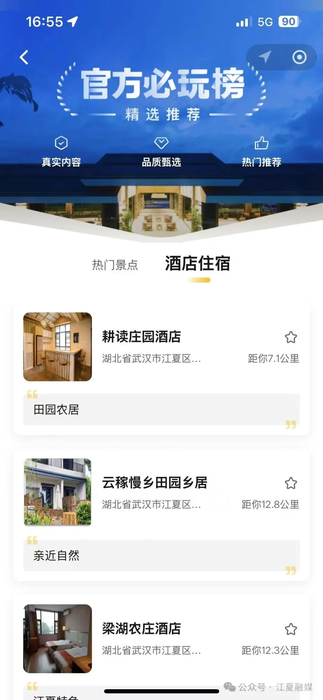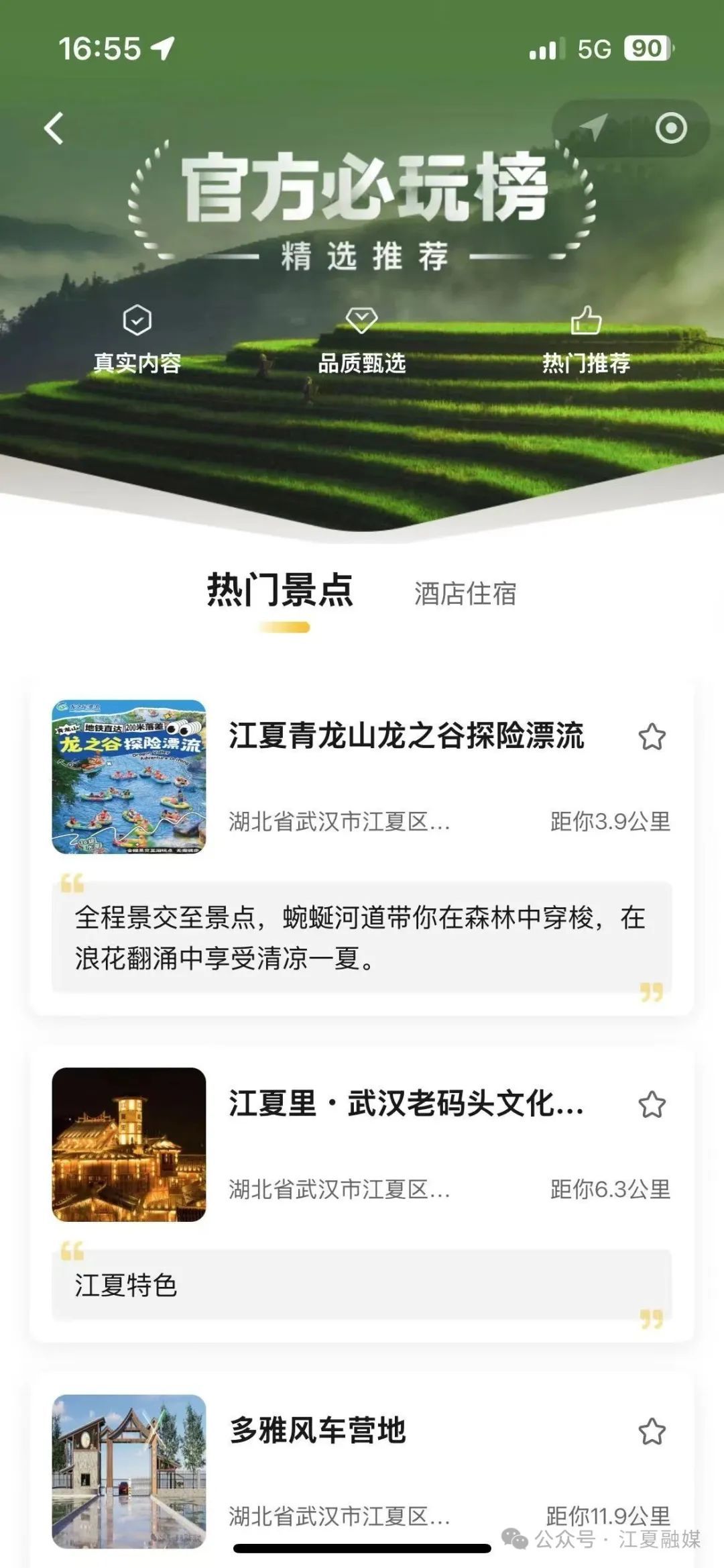 要是你想直奔熱門景點(diǎn),那“官方必玩榜”可一定得看,這里把江夏熱門景區(qū)、酒店住宿等項(xiàng)目一網(wǎng)打盡,輕松獲取各景點(diǎn)的詳細(xì)介紹,像八分山、梁子湖風(fēng)景區(qū)、小朱灣這些熱門景點(diǎn),除了精美的圖文介紹,還能一鍵導(dǎo)航,直接規(guī)劃好去景點(diǎn)的路,線真的太方便了!