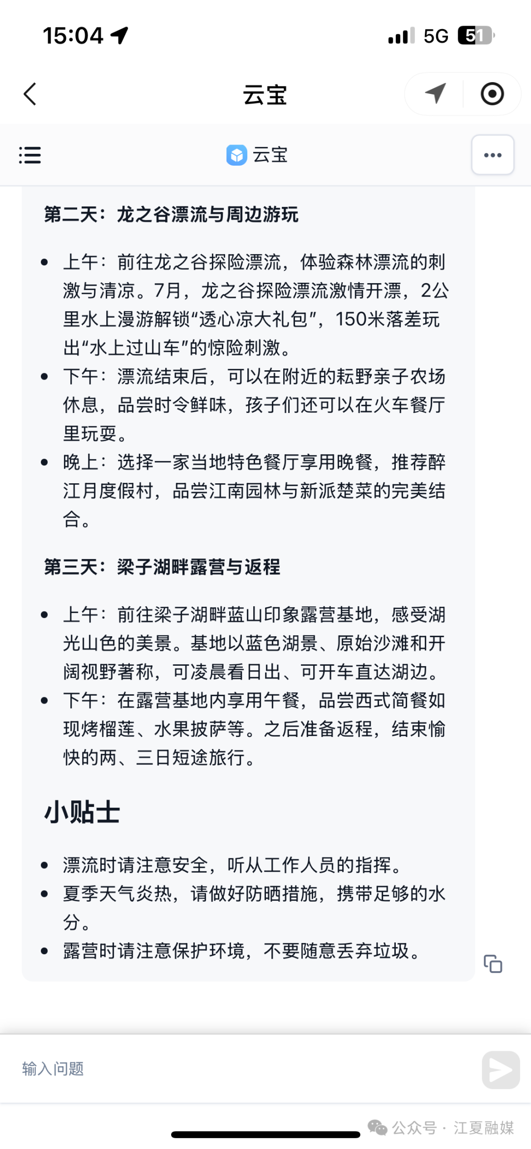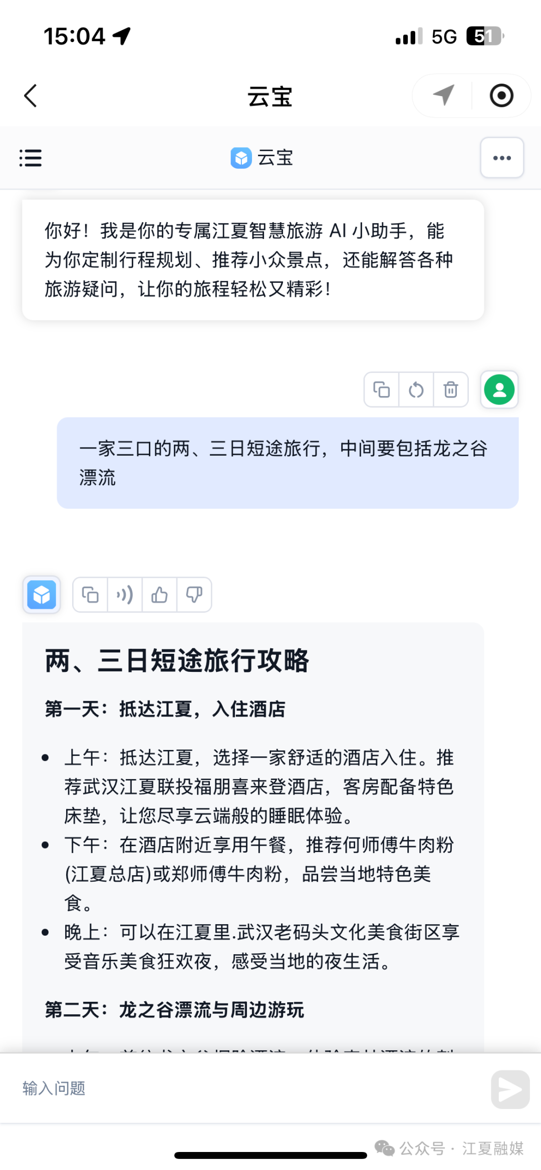 荊楚網(wǎng)(湖北日?qǐng)?bào)網(wǎng))訊 (通訊員 王夫之)暑假臨近結(jié)束,不少家庭都在計(jì)劃一場(chǎng)既能避暑又適合親子互動(dòng)的旅行,但面對(duì)眾多目的地和繁雜的信息,想要規(guī)劃出一條貼合自家需求的完美路線,是不是常常讓人犯難,別擔(dān)心,AI云寶來幫忙!