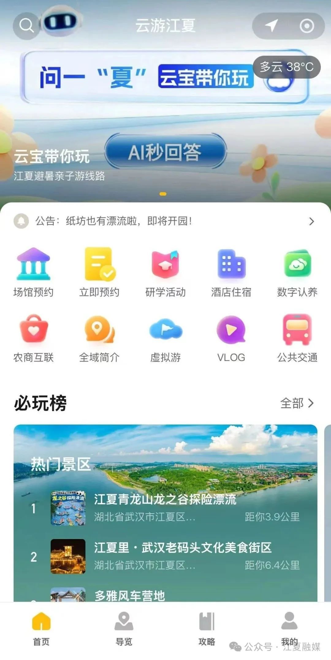 現(xiàn)在就來開啟智能之旅吧!打開微信搜索“云游江夏”小程序或者掃碼。