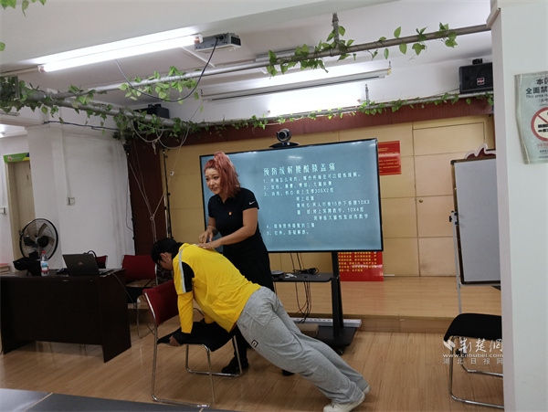 樊容帶領(lǐng)學(xué)員練習(xí)實(shí)用健康知識(shí)。 通訊員供圖