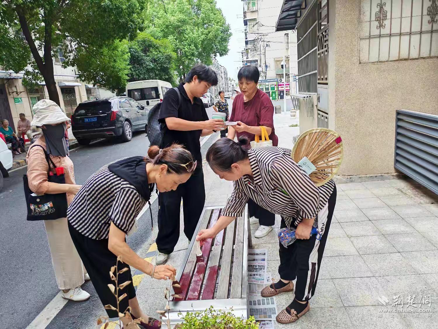 隨后,居民們在督導(dǎo)員和社區(qū)工作人員帶領(lǐng)下走進19棟小廣場,開展“睦鄰花廊”老舊桌椅翻新環(huán)節(jié)。大家齊心協(xié)力,刷漆、上色,讓11張因風(fēng)雨侵蝕而斑駁的休閑長椅煥然一新——其中3張漆成老紅色,8張披上繽紛彩裝。一個多小時后,廣場煥發(fā)新貌,成為居民休閑的新亮點。
