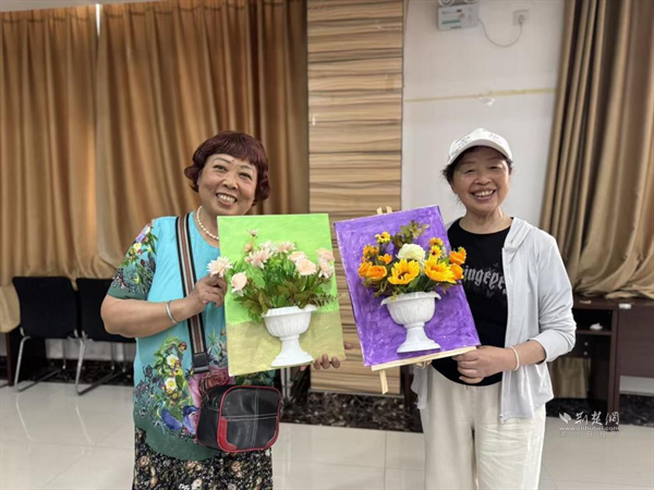 “這旋律一聽就熟!是《沒有共產(chǎn)黨就沒有新中國》!”紅歌競猜環(huán)節(jié),老黨員們爭相搶答,經(jīng)典旋律喚起共同記憶,現(xiàn)場氣氛格外熱烈。隨后的油畫創(chuàng)作中,大家在老師的指導(dǎo)下手握畫筆、挑選顏料,在畫板上細(xì)細(xì)涂色,并將永生花點綴在畫作中。經(jīng)過數(shù)小時的設(shè)計制作,一幅幅獨具創(chuàng)意的立體畫在居民們手中誕生。