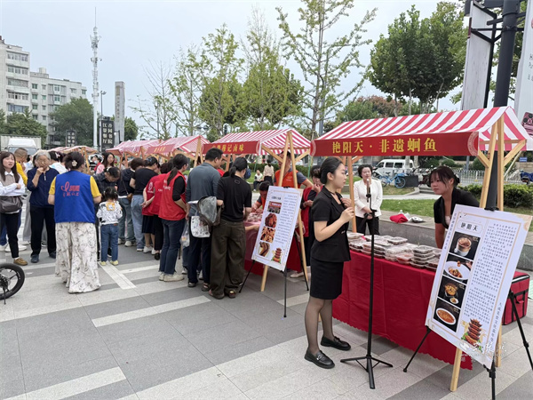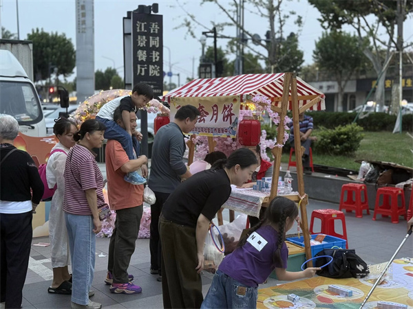 活動(dòng)現(xiàn)場(chǎng)設(shè)置市集區(qū)與演藝區(qū)兩大板塊。市集區(qū)內(nèi)人頭攢動(dòng),轄區(qū)共建單位、音樂(lè)企業(yè)與多家商戶積極參與,匯聚特色商品與音樂(lè)互動(dòng)體驗(yàn)。大音琴行展出多種樂(lè)器并銷(xiāo)售音樂(lè)周邊產(chǎn)品,吸引眾多武漢音樂(lè)學(xué)院學(xué)生及音樂(lè)愛(ài)好者駐足交流;元祖食品推出月餅、點(diǎn)心等節(jié)令糕點(diǎn)展銷(xiāo),為中秋佳節(jié)提前預(yù)熱;艷陽(yáng)天·非遺鮰魚(yú)(黃鶴樓店)、中百倉(cāng)儲(chǔ)、九州上醫(yī)館及多家大成路特色美食商戶也紛紛設(shè)點(diǎn),讓市民在觀賞演出之余,盡享購(gòu)物與美食樂(lè)趣。