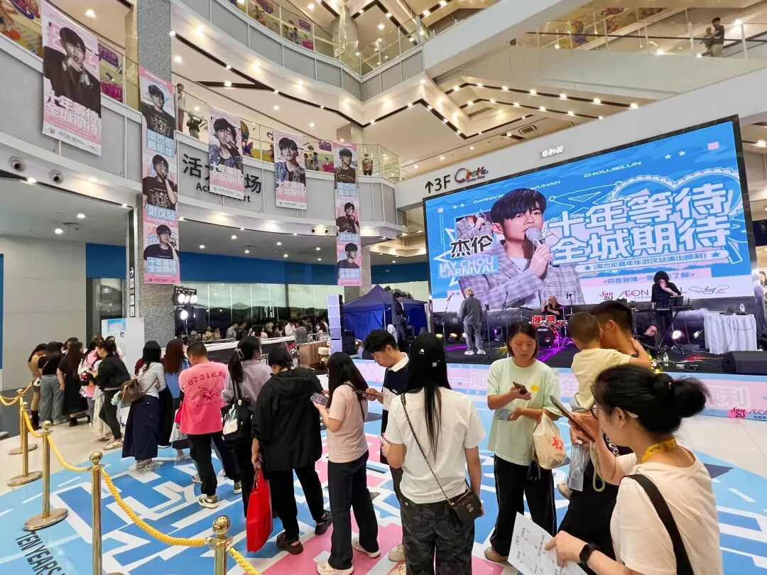 9月26日—28日,周杰倫主題音樂會嘉年華活動在永旺夢樂城武漢經開購物中心連續(xù)三天上演。“杰迷”們站進專屬打卡框,與“杰倫”同框合影,參加粉絲互動活動,領取應援周邊,沉浸式體驗“倫”式浪漫。永旺夢樂城武漢經開購物中心相關負責人告訴記者,9月27日,永旺夢樂城接待市民近10萬人,銷售額超800萬元。