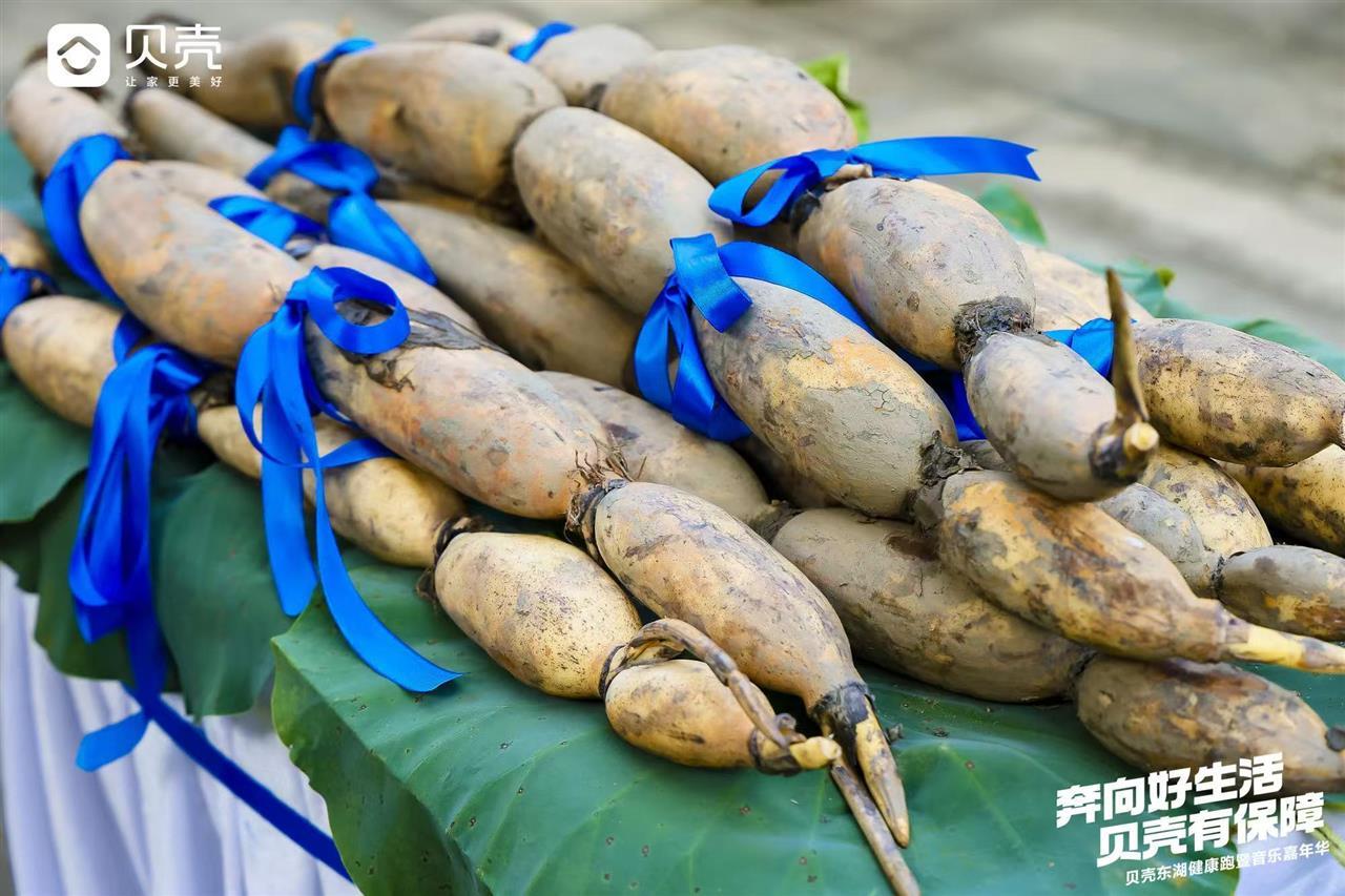 有趣的是,本次比賽為前三名選手準備了迪卡儂山地自行車、王一博同款SKG腰部按摩儀器、Artsmith筋膜槍深層肌肉按摩器外,還向他們特別贈送了1根長約1.6米的蓮藕。這也是當天剛從藕塘里挖出的新鮮野藕。這一充滿特色的獎品,寓意著“跑在東湖,暖在胃里”,讓跑友們在享受運動快樂的同時,也能感受到濃濃的江城風味。