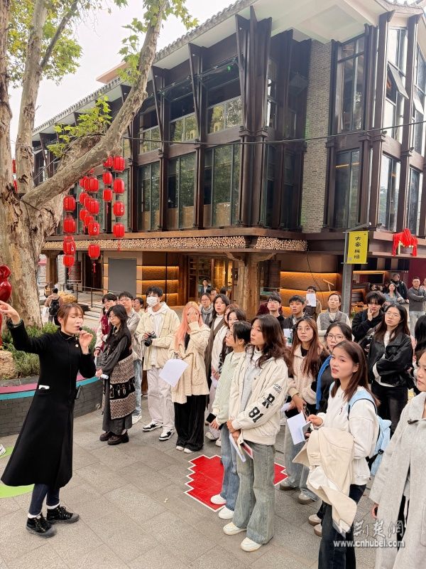 活動伊始,青年們在專業(yè)講解員的引導(dǎo)下游覽斗級營歷史文化街區(qū),依次打卡特色文化地標(biāo)與標(biāo)志性建筑,品味武漢地域美食文化,深度感受老城獨特韻味與時代活力的交融共生。