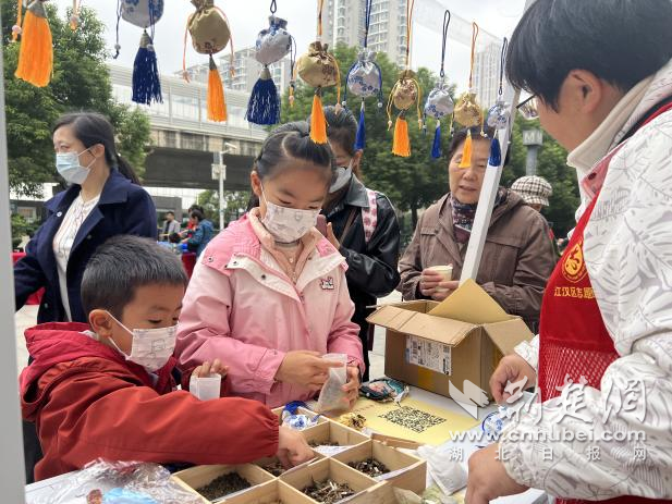 體驗(yàn)區(qū)里,社工帶領(lǐng)孩子們動(dòng)手制作茱萸香囊,講述“佩茱萸祈福避災(zāi)”的古老風(fēng)俗。孩子們捧著親手做好的香囊,迫不及待地想送給家里的長輩。公益集市的人氣更是高漲,非遺絨花攤位展示傳統(tǒng)之美,慈善義賣匯聚鄰里愛心,植物醫(yī)生攤位傳遞健康養(yǎng)生理念。