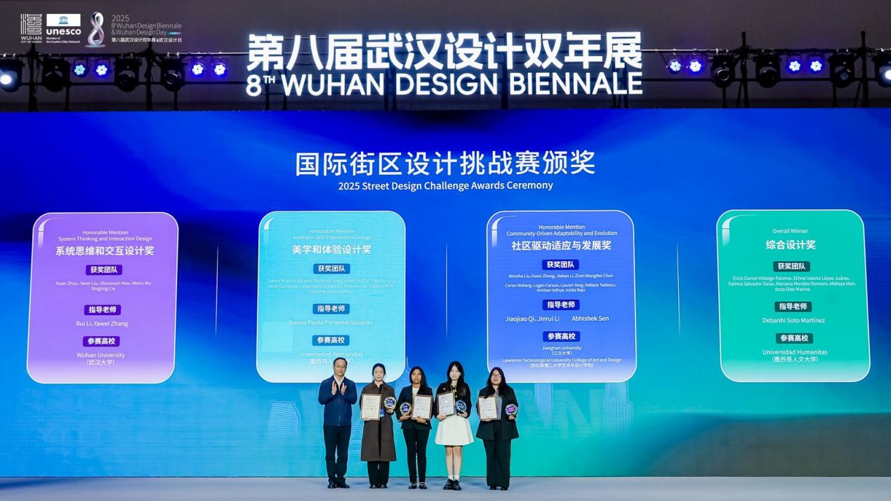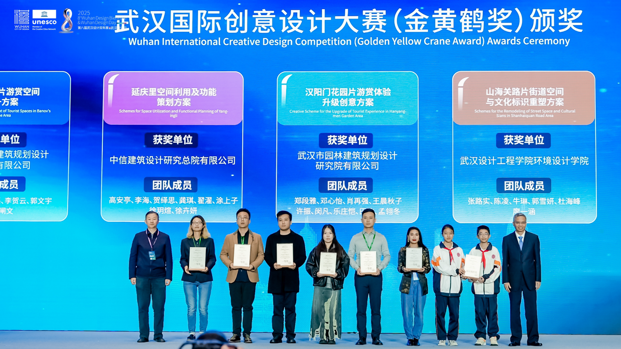 開幕式上,2025年武漢國(guó)際創(chuàng)意設(shè)計(jì)大賽(金黃鶴獎(jiǎng))與 2025年國(guó)際街區(qū)挑戰(zhàn)賽頒獎(jiǎng)儀式同步舉行。其中,象征武漢設(shè)計(jì)創(chuàng)新探索的“金黃鶴獎(jiǎng)”,今年特意選取黃鶴樓、山海關(guān)路、漢陽(yáng)門等市民常去、關(guān)注度高、滿滿煙火氣的城市地標(biāo)作為設(shè)計(jì)對(duì)象,不限專業(yè)和地域,征集更宜人的更新提升方案。現(xiàn)場(chǎng),武漢瑞拓建筑設(shè)計(jì)咨詢有限公司等6個(gè)專業(yè)組一等獎(jiǎng)和最佳組織獎(jiǎng)武漢市七一華源中學(xué)等獲獎(jiǎng)代表接受頒獎(jiǎng)。國(guó)際街區(qū)挑戰(zhàn)賽,則是由聯(lián)合國(guó)教科文組織設(shè)計(jì)之都城市聯(lián)合舉辦,全球高校團(tuán)隊(duì)共同參與的國(guó)際設(shè)計(jì)賽事。經(jīng)過全球30位權(quán)威專家1個(gè)月的精心細(xì)致評(píng)審,選出了四個(gè)優(yōu)勝方案。現(xiàn)場(chǎng),為交互設(shè)計(jì)獎(jiǎng)獲獎(jiǎng)團(tuán)隊(duì)武漢大學(xué)、美學(xué)設(shè)計(jì)獎(jiǎng)獲獎(jiǎng)團(tuán)隊(duì)墨西哥人文大學(xué)、社區(qū)發(fā)展獎(jiǎng)獲獎(jiǎng)團(tuán)隊(duì)江漢大學(xué)團(tuán)隊(duì)和美國(guó)勞倫斯理工大學(xué)團(tuán)隊(duì),以及綜合設(shè)計(jì)獎(jiǎng)獲獎(jiǎng)團(tuán)隊(duì)墨西哥人文大學(xué)頒獎(jiǎng)。