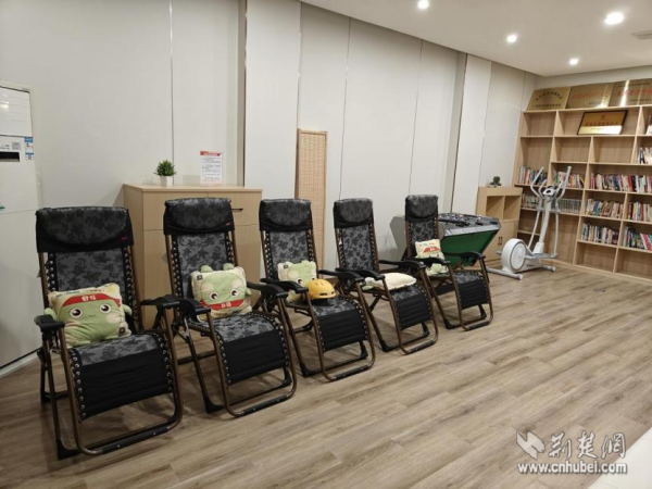 走進這個330平方米的升級版驛站,變化隨處可見。這里不僅有基礎的微波爐、冰箱、沙發(fā)等,更添置了共享淋浴間、聽書機、直飲機、空調(diào)等。曾經(jīng)的后廳,如今被打造成一個多功能“潮玩空間”——午休時間,拉上窗簾,這里是配備了舒適躺椅的靜謐午睡室;工作之余,這里又變身為熱鬧的“社交俱樂部”,大家可以一起看電視、玩桌游,徹底放松身心。