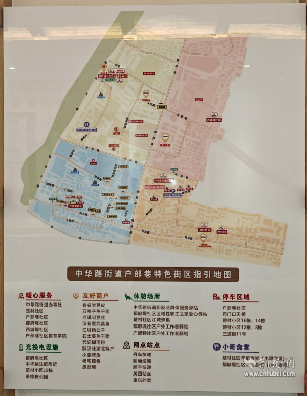 這一切的背后,是“戶部巷老茶館”聯(lián)席議事制度的有力支撐。騎手停車難?社區(qū)立即協(xié)調(diào),騰挪出專用停車位。取餐高峰期擁擠?社區(qū)出面與商戶溝通,促成“騎手優(yōu)先”的默契。社區(qū)還聯(lián)合騎手們,共同繪制了一份戶部巷友好街區(qū)地圖,清晰標注出“小哥食堂”、友好商家、充換電點等關鍵位置,成為騎手們?nèi)耸忠环莸摹肮ぷ鲗毜洹?。從“關鍵小事”到“發(fā)展大事”,騎手們的建議真正做到了“件件有回應,事事有著落”。