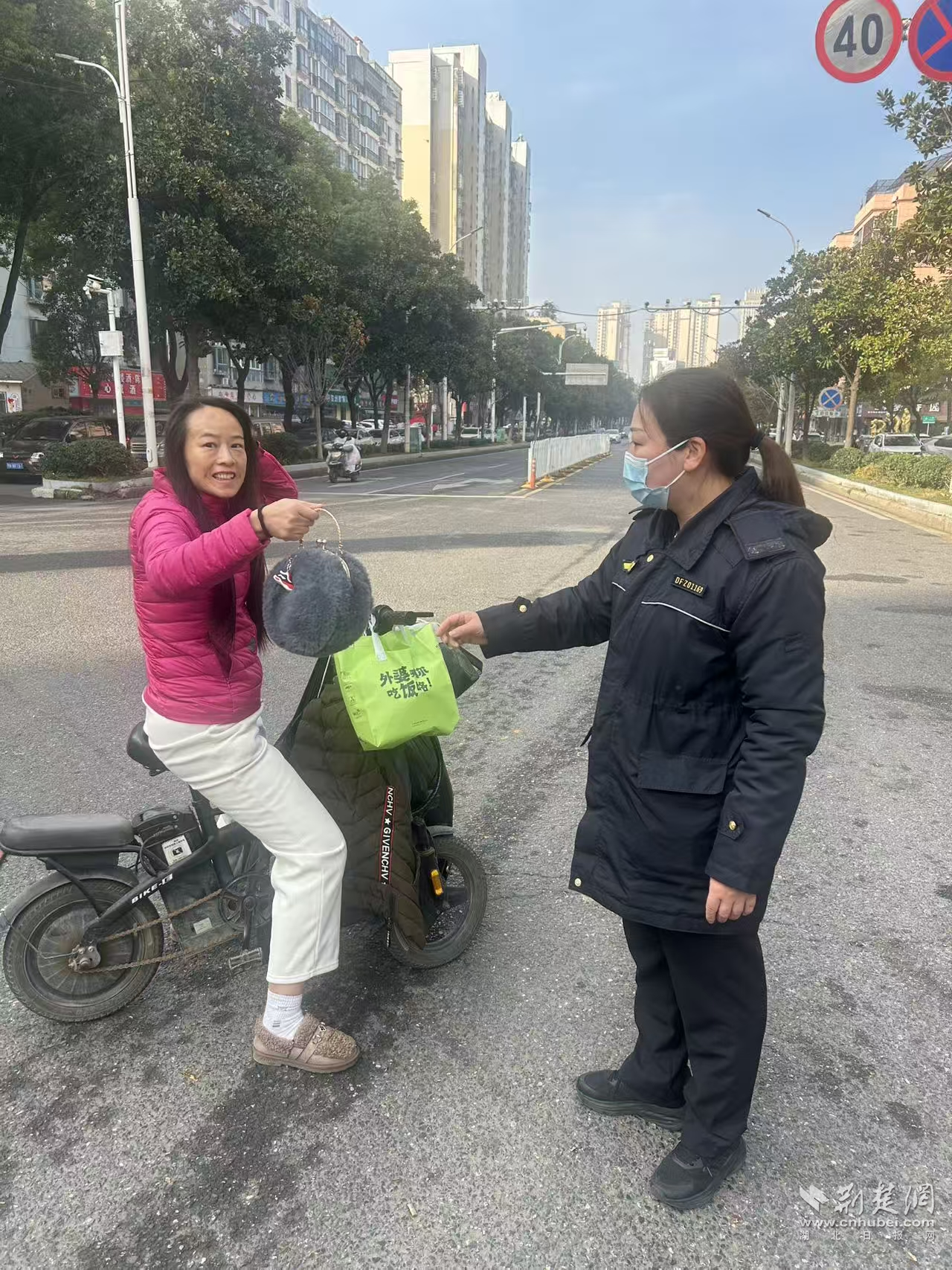 荊楚網(wǎng)(湖北日報網(wǎng))訊(記者 何婧 通訊員 周紅霞 黃慕輝)“太感謝你們了!這手機要是丟了,我的工作和聯(lián)系可就全耽誤了!”11月24日上午9點多,在東西湖區(qū)一清路與東吳大道交叉路口,一位女士從吳家山街道綜合執(zhí)法中心隊員張輝手中接過失而復(fù)得的手提包,激動得連聲道謝。