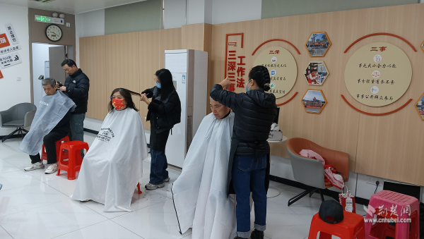 活動(dòng)最后是便民服務(wù)環(huán)節(jié)。社區(qū)對(duì)接武昌“新興學(xué)院”天姿美容美發(fā)學(xué)校資源開展義務(wù)理發(fā)服務(wù)。志愿者們提前布置好服務(wù)區(qū),認(rèn)真做好工具消毒,隨后耐心詢問每一位前來理發(fā)的流動(dòng)黨員和老年人的需求,憑借嫻熟技藝為大家精心修剪發(fā)型。“不出社區(qū)就能享受到這么好的服務(wù),還能和黨員同志們一起學(xué)習(xí)交流,心里特別暖?!币晃粍偫硗臧l(fā)的老人滿意地說道。現(xiàn)場(chǎng)洋溢著濃濃的鄰里溫情。