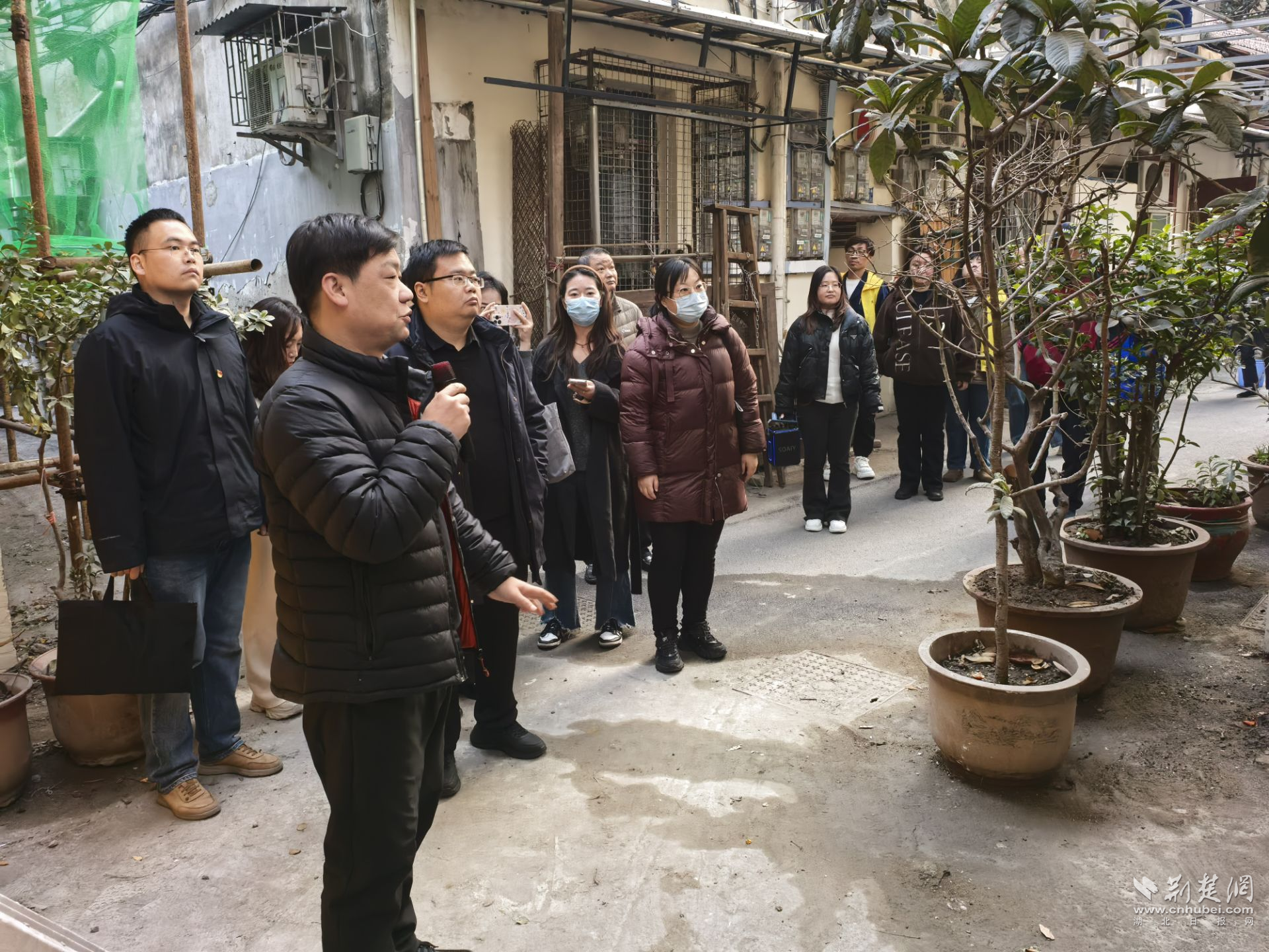 活動首站,參會人員實地觀摩市級一類基層治理創(chuàng)新項目——肖家社區(qū)“古槐生香·老院煥新顏”項目。