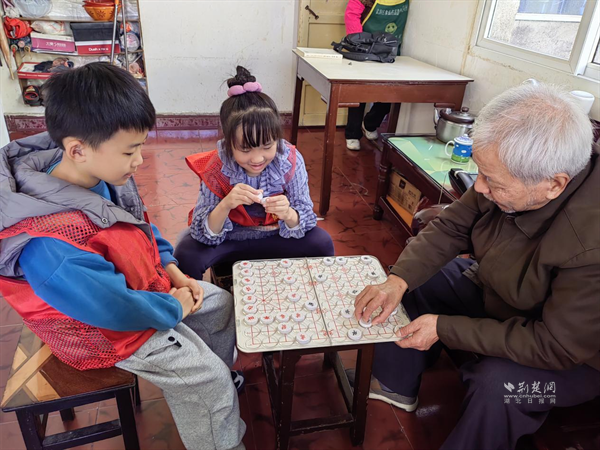 兒童志愿者陪老人下棋。 通訊員供圖