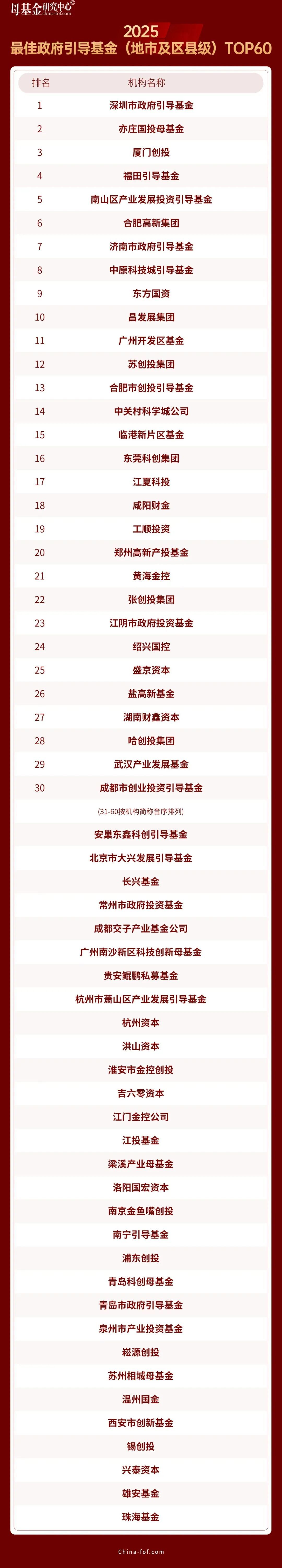 12月29日,母基金研究中心發(fā)布2025年度榜單,江夏科投集團(tuán)獲評“2025最佳政府引導(dǎo)基金(地市及區(qū)縣)TOP30”第17名、科投集團(tuán)董事長韓偉榮膺“2025最佳母基金投資人TOP40”稱號,連續(xù)兩年榮登榜單是業(yè)內(nèi)權(quán)威機(jī)構(gòu)對江夏科投集團(tuán)作為科技創(chuàng)新投資平臺投資能力、管理能力的認(rèn)可,更標(biāo)志著其在區(qū)域科技創(chuàng)新資源整合、產(chǎn)業(yè)培育布局等方面的能力已躋身全國地市及區(qū)縣級引導(dǎo)基金第一梯隊,成為地方政府引導(dǎo)基金助力區(qū)域經(jīng)濟(jì)高質(zhì)量發(fā)展的標(biāo)桿樣本。