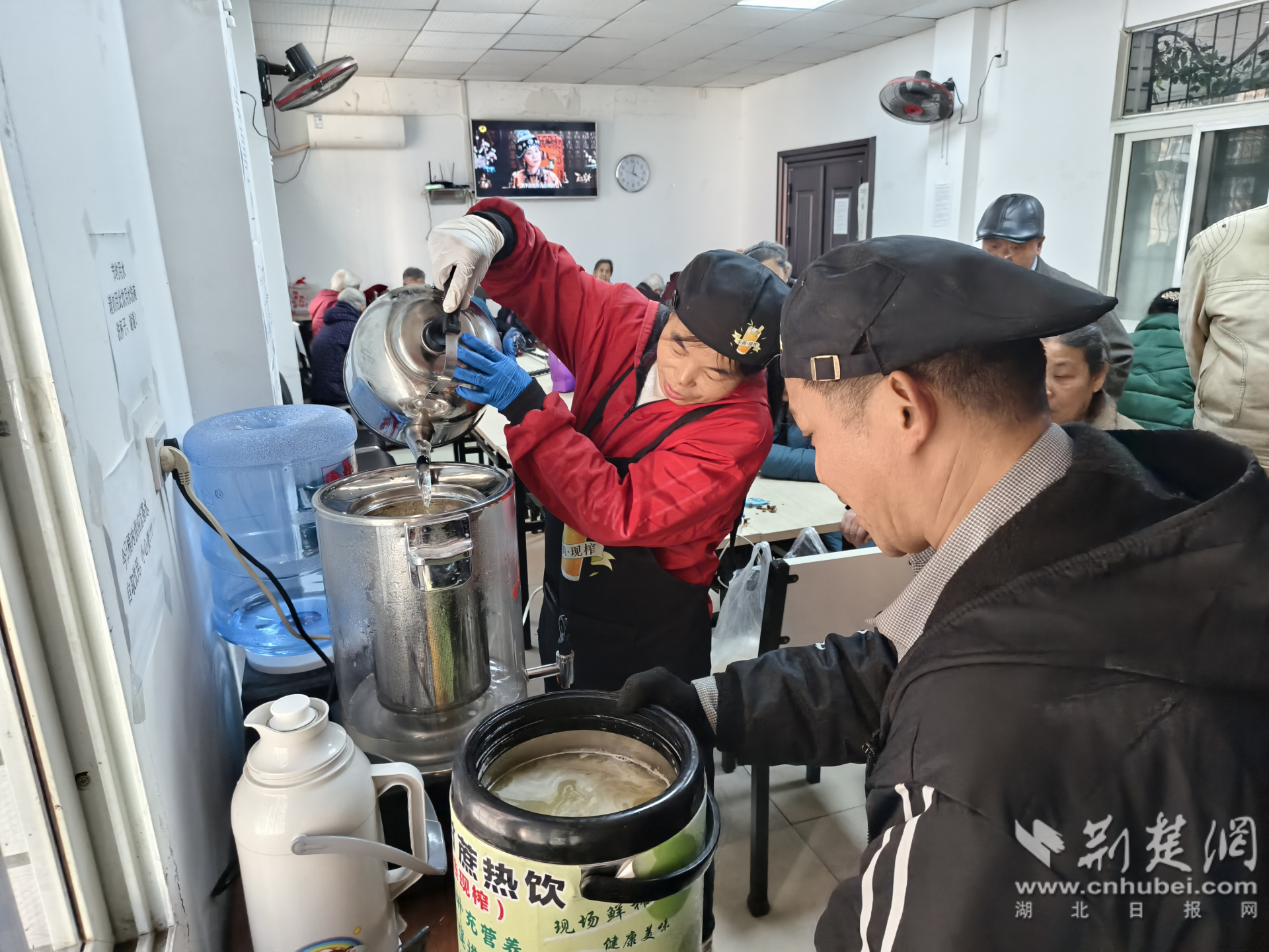荊楚網(wǎng)(湖北日報網(wǎng))訊(通訊員 游薇 侯本瑞)近日,在武昌區(qū)楊園街道電力新村社區(qū)取暖室內(nèi),愛心商家每天惠商鋪的工作人員將一杯杯甘甜溫熱的甘蔗汁送到社區(qū)老人們手中,用樸實善舉傳遞社會溫情。