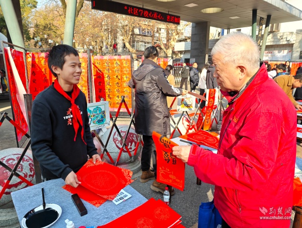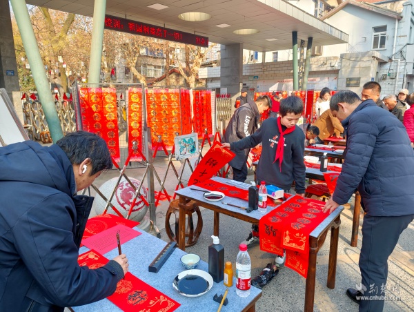 荊楚網(wǎng)(湖北日報(bào)網(wǎng))訊(通訊員 胡雅菲 許小玲)為弘揚(yáng)中華優(yōu)秀傳統(tǒng)文化,凝聚區(qū)域共建合力,助力武昌區(qū)創(chuàng)建“中國書法之鄉(xiāng)”,1月15日上午,由湖北省教育學(xué)會(huì)書法教育專業(yè)委員會(huì)主辦、武昌區(qū)黃鶴樓街道花堤社區(qū)聯(lián)合共建單位湖北省武昌實(shí)驗(yàn)小學(xué)承辦的“社區(qū)學(xué)校心連心,喜送福聯(lián)迎新春”公益活動(dòng),在實(shí)驗(yàn)小學(xué)門口拉開帷幕。