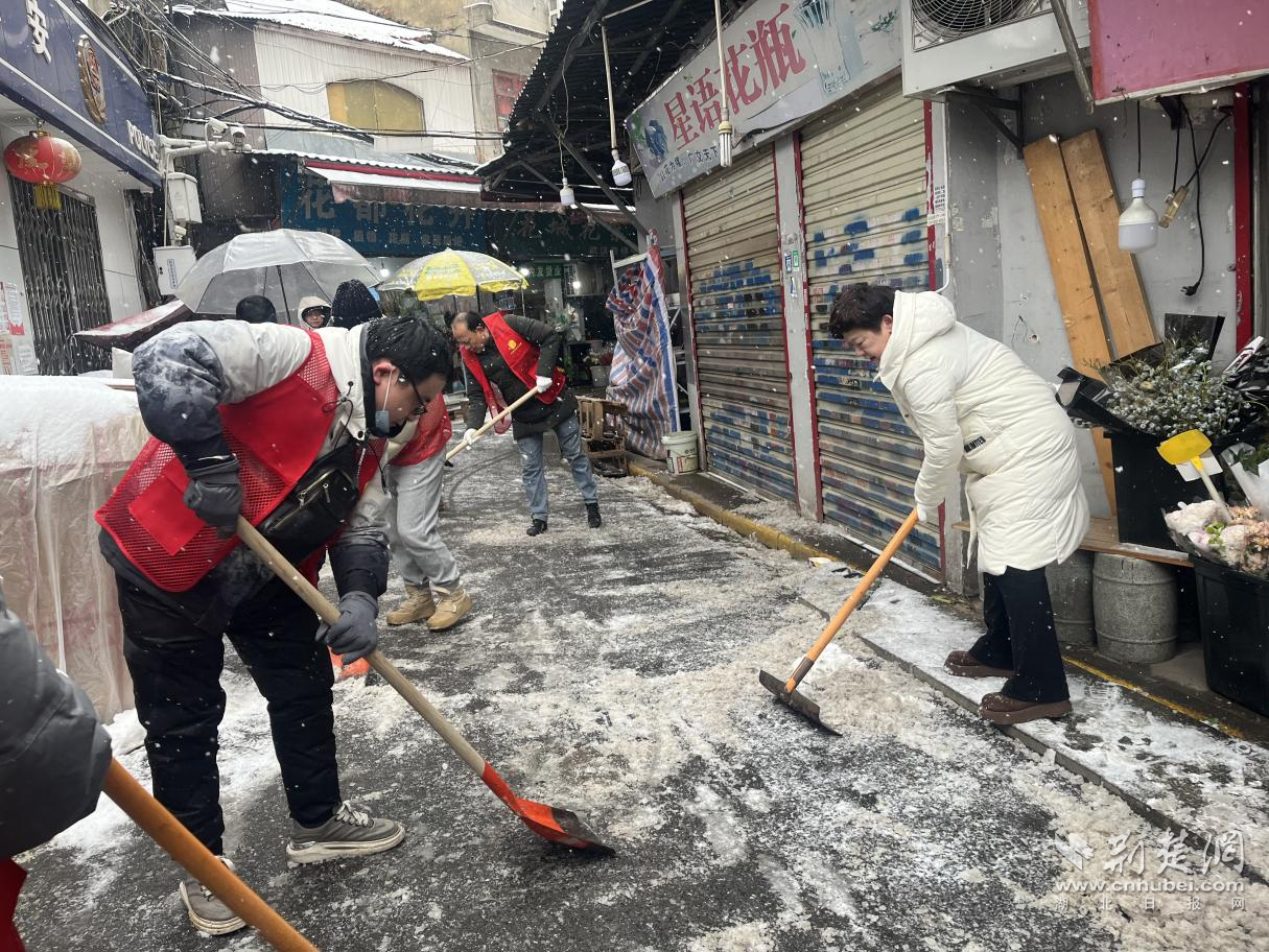 當(dāng)天清晨,清雪人員已在轄區(qū)出行要道、社區(qū)小巷等多個點位同步作業(yè)。街道機關(guān)干部帶隊下沉一線,來自轄區(qū)的多支力量陸續(xù)到位。江漢區(qū)科學(xué)技術(shù)協(xié)會、區(qū)湖泊管理所等單位黨員積極參與行動;新華路體育中心、南國中心等單位也主動對接,紛紛派出人員和工具協(xié)同作業(yè)。