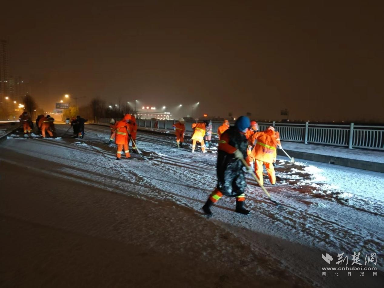 荊楚網(wǎng)(湖北日報(bào)網(wǎng))訊(通訊員姜鵬)1月20日凌晨,武漢市迎來今冬首場降雪。為確保城市道路暢通,武漢經(jīng)開區(qū)軍山街道的環(huán)衛(wèi)工人提前上崗,在嚴(yán)寒中開展掃雪除冰作業(yè),并在交通高峰時(shí)段主動幫助受困車輛,三小時(shí)內(nèi)徒手助推近40輛汽車脫困,成為風(fēng)雪中最暖心的“橙色力量”。