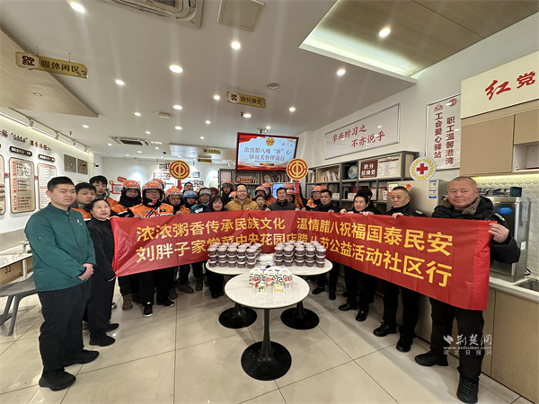 活動現場,“暖心聯(lián)盟”企業(yè)劉胖子家常菜館中央花園店開展“暖心臘八粥 暖胃更暖心”服務,提供百余份臘八粥。工作人員將臘八粥分裝至便攜餐盒,搭配一次性餐具,供戶外工作者排隊領取,方便其攜帶食用。外賣小哥夏博文表示,驛站每逢節(jié)日都會組織關懷活動,剛開完晨會就能吃上熱粥,切實感受到“娘家人”的關懷,渾身充滿干勁。