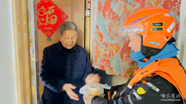 溫暖派送覆蓋多元群體。在戶外勞動(dòng)者驛站,環(huán)衛(wèi)工人、快遞外賣騎手從志愿者手中接過(guò)熱粥;社區(qū)還鏈接武漢市第三醫(yī)院資源,為戶外工作者提供健康咨詢。幾位外賣騎手主動(dòng)化身“公益騎手”,與黨員志愿者一同將暖心粥品送至“鶴耋安”高齡獨(dú)居老人家中。黨員志愿者還走訪了周邊商戶、殘疾人家庭及退役軍人家屬,并在社區(qū)設(shè)點(diǎn)邀請(qǐng)居民共享溫情。一碗粥,沿著黨員和志愿者的溫暖足跡,流入社區(qū)每個(gè)角落。