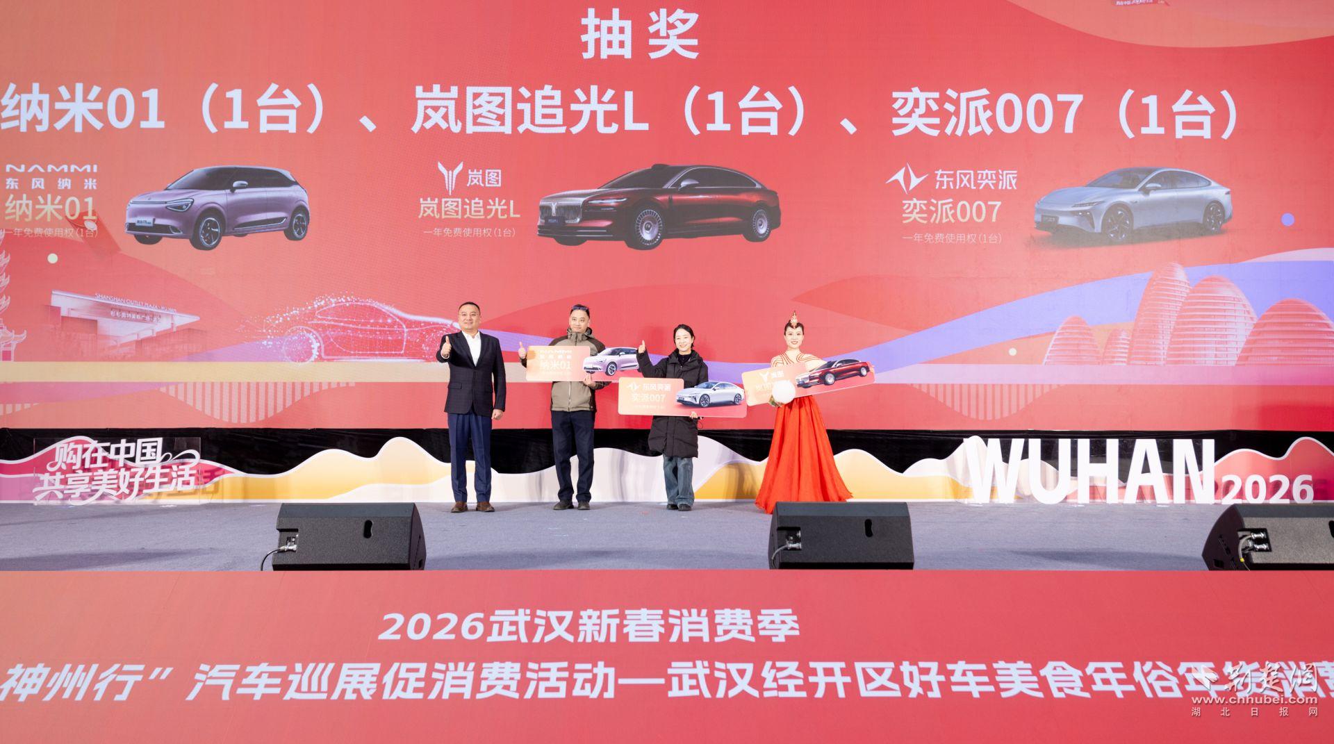 3位幸運(yùn)市民現(xiàn)場(chǎng)抽走“武漢造”汽車一年免費(fèi)使用權(quán)。通訊員供圖