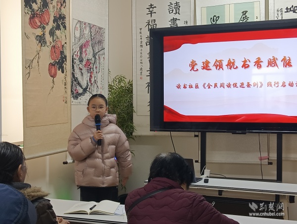 荊楚網(wǎng)(湖北日報(bào)網(wǎng))訊(通訊員 吳玲麗)為深入貫徹落實(shí)《全民閱讀促進(jìn)條例》精神,推動“全民參與、公益普惠”理念在基層落地生根,2月1日上午,武昌區(qū)黃鶴樓街道讀書社區(qū)在黃鶴書房舉辦“黨建領(lǐng)航?書香賦能”條例踐行啟動活動。社區(qū)班子成員、黨員代表、老年居民、新就業(yè)群體及青少年代表共同參與,共同開啟社區(qū)全民閱讀新篇章。