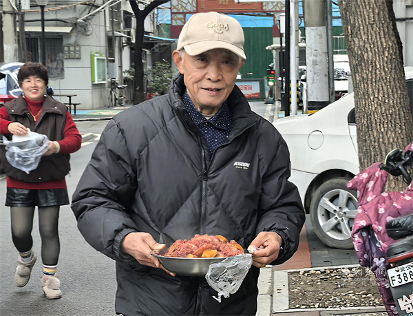 上午10時(shí),長桌上漸漸擺滿了四十余道菜品。李師傅做的紅燒魚寓意“年年有余”,黃師傅的八寶飯?zhí)鹣丬浥?,還有趙師傅拿手的包子,南北風(fēng)味交融。黃師傅感慨道,以前小區(qū)更像一個(gè)單純的居住場所,現(xiàn)在卻真正有了家園的模樣?!皩O子不會(huì)做的作業(yè),群里一問就有三、四個(gè)鄰居幫忙解答,這種踏實(shí)感,千金難買?!?/p>