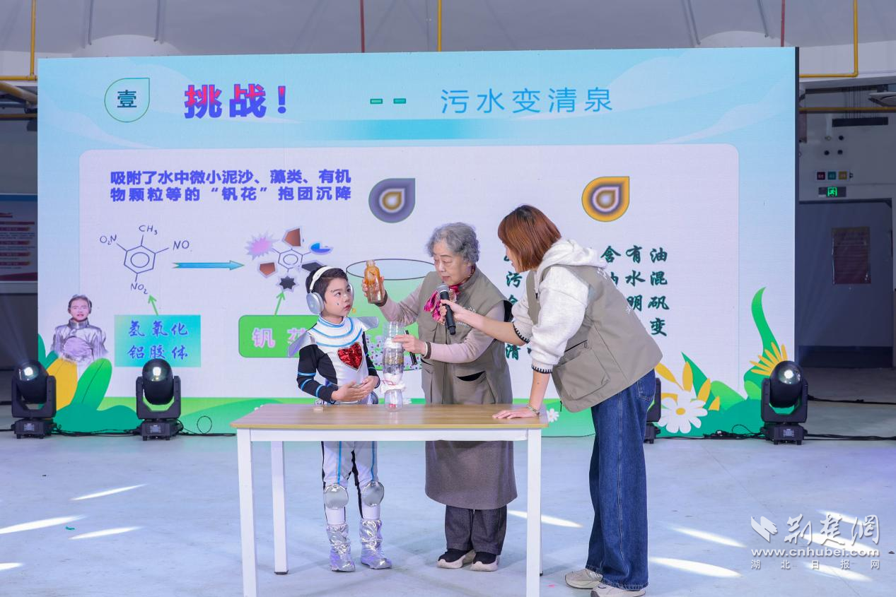 演出結(jié)束后,科普專家熊永紅教授和劉漢生老師開展趣味小論壇,進(jìn)一步延伸劇中知識點。熊教授現(xiàn)場復(fù)刻“污水變清水”實驗,讓孩子們直觀感受凈水原理;劉老師則結(jié)合江漢湖泊生態(tài)解答“江漢魚是否只屬于江漢區(qū)”的問題,并分享專屬繪本,引導(dǎo)孩子在互動中理解科學(xué)。