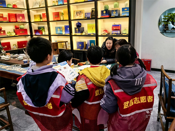 來(lái)自樓宇托管班的十余名小學(xué)生,在志愿者引導(dǎo)下化身“小小安全宣傳員”。他們身著“紅背心”,手持禁鞭宣傳折頁(yè)和倡議書(shū),分組走進(jìn)陸羽茶都商鋪和人群聚集點(diǎn),向商戶(hù)、顧客及過(guò)往市民講解煙花爆竹禁燃禁放的相關(guān)規(guī)定、潛在危害及環(huán)保意義,并分發(fā)倡議資料。