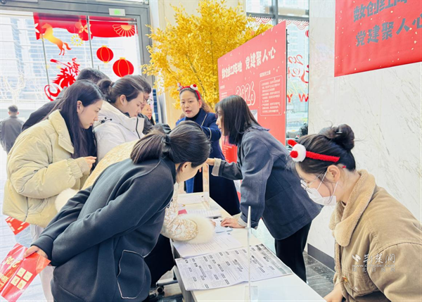 此外,現(xiàn)場還設(shè)有“黨建宣傳與入黨咨詢站”,通過展板系統(tǒng)展示樓宇黨建工作成效、支部風采與陣地建設(shè)情況,工作人員為職工提供入黨政策講解和成長指導,吸引多位職工駐足咨詢并登記入黨意向,推動組織關(guān)懷切實延伸到樓宇一線。