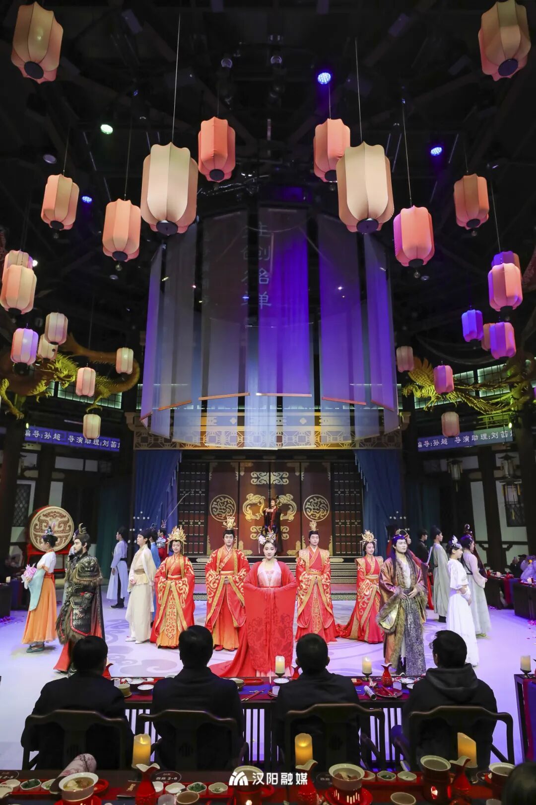待到晚上,沉浸式餐秀《三國群芳宴》開席!一邊干飯一邊看舞蹈表演,讓手機(jī)里的朋友先吃,共同感受荊楚文化與美食的震撼。