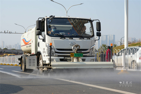 灑水車進(jìn)行路面清洗作業(yè)。 通訊員供圖