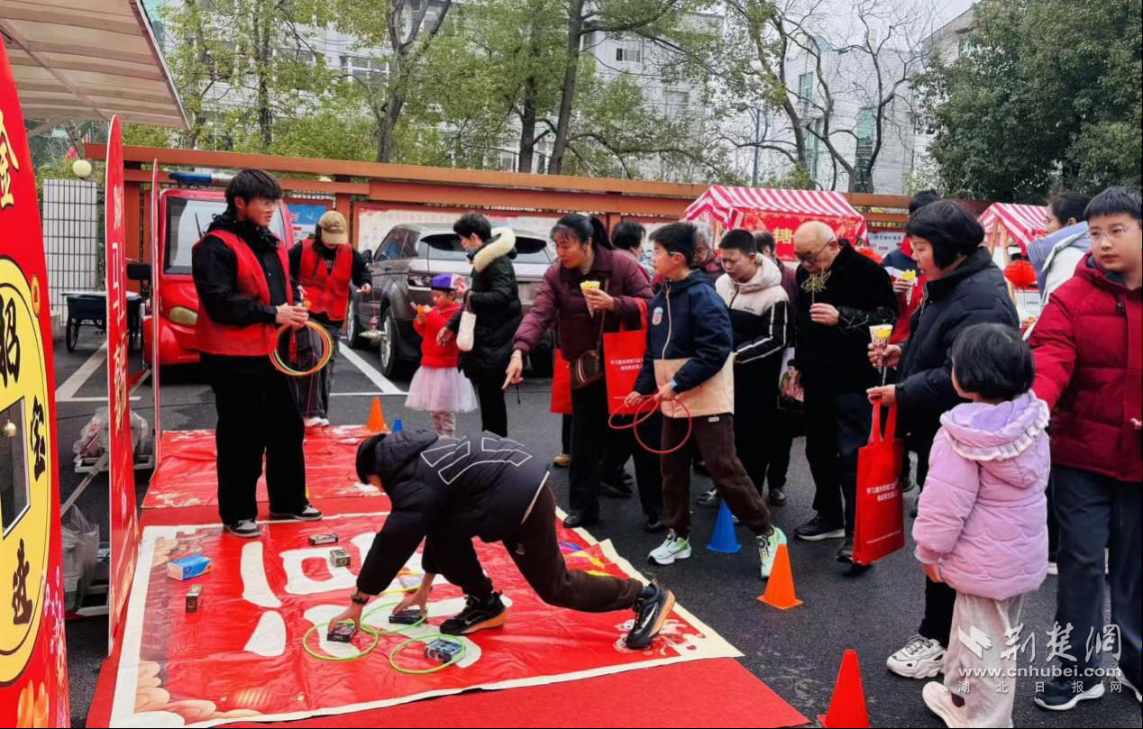趣味游戲區(qū)居民憑游戲券參與挑戰(zhàn),通關后獲得美食券。通訊員供圖